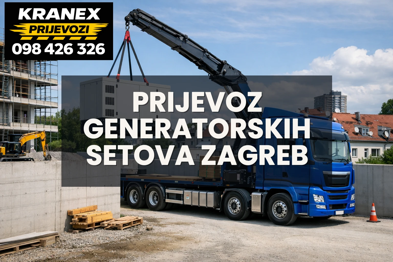 Ako vam treba savjet, procjena ili usluga za prijevoz generatorskih setova u Zagrebu i okolici, slobodno se javite i raspitajte o najboljem rješenju za vašu lokaciju. Za upit i dogovor nazovite Kranex: 098426326.